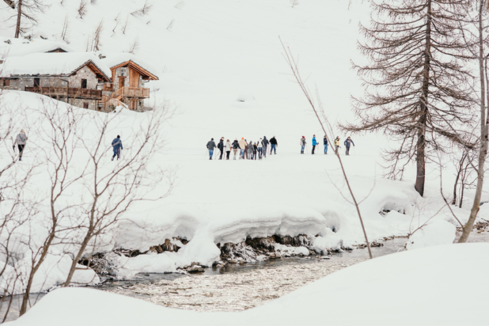 Nel buio della sera, immersi nel bianco immacolato della neve, tra abeti secolari … ad un passo dal cielo stellato, la serata in baita a Lo Riondet è un’esperienza notturna unica in montagna.