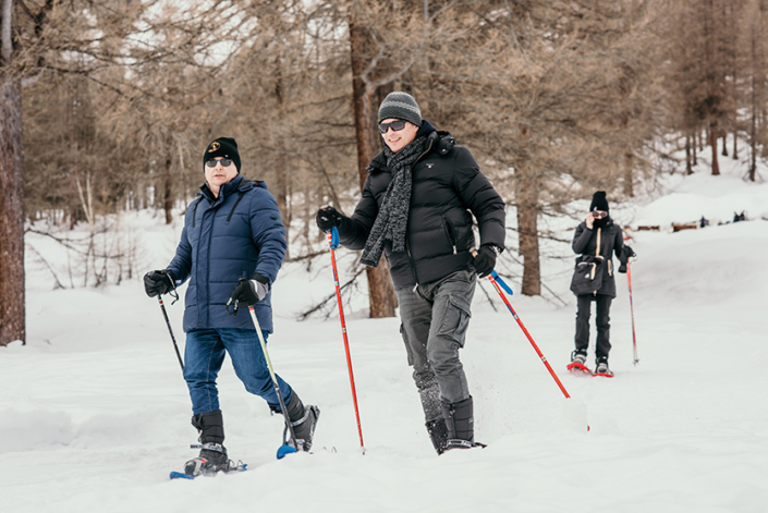 Accompagnati da una guida, ciaspole ai piedi, si parte per un viaggio tra boschi, natura e cieli blu